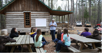 Back at the cabin shortly after 1:30 the class was found doing a quick recap of the day’s activities and the meaning of their encounters. The weather had been grand with the temperature near 80 and sunshine falling through the trees to brighten the forest floor. Good-byes were said as students headed off to board the bus for the school campus in Conway.