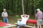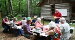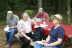 On Saturday afternoon, May 18, South Fork docents who lead a wide variety of activities at SFNC along the trails and at the old log cabin spent time sharing information about flowers, fungi, insects, and such life as is found at the Nature Center. After a lunch of burgers and dogs fresh off the grill the folks that had gathered reveiwed aspects of leading groups like they do at SF by using the SF Docent manual as an informative guideline.
