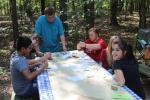Other student groups “journaled” their ideas and experiences as they took in the sights and sounds of the South Fork woods…they wrote miniature essays that they turned in to their docent leader…neat readings. Still other students did leaf-stamping art with nature and painted with sticks and walnut hull dye…they created artistic renditions of leaves by using paint on the lower leaf surface, transferring that leaf vein print to art paper, and spatter painting the leaf outline…the artful leaf and its colors were an introduction to the coming fall season.