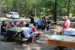 Before taking pictures of all the class on the Riddle Cabin porch, there was a wrap-up of the day’s activities…lots of ground had been covered, new ideas had surfaced, and textbook learning from back in the classroom had been used in a new setting (the slogan “no child left inside” surely fit the day’s activities)…the day had been a special one, a day of fun where the learning took place outside on the Greers Ferry peninsula known as South Fork.
