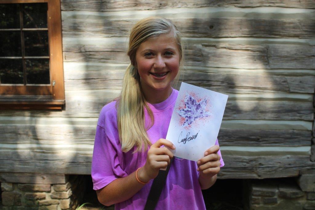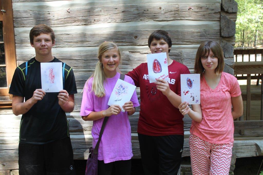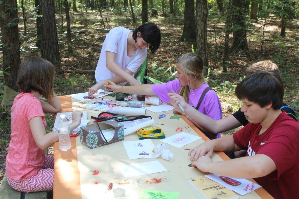 Other student groups “journaled” their ideas and experiences as they took in the sights and sounds of the South Fork woods…they wrote miniature essays that they turned in to their docent leader…neat readings. Still other students did leaf-stamping art with nature and painted with sticks and walnut hull dye…they created artistic renditions of leaves by using paint on the lower leaf surface, transferring that leaf vein print to art paper, and spatter painting the leaf outline…the artful leaf and its colors were an introduction to the coming fall season.
