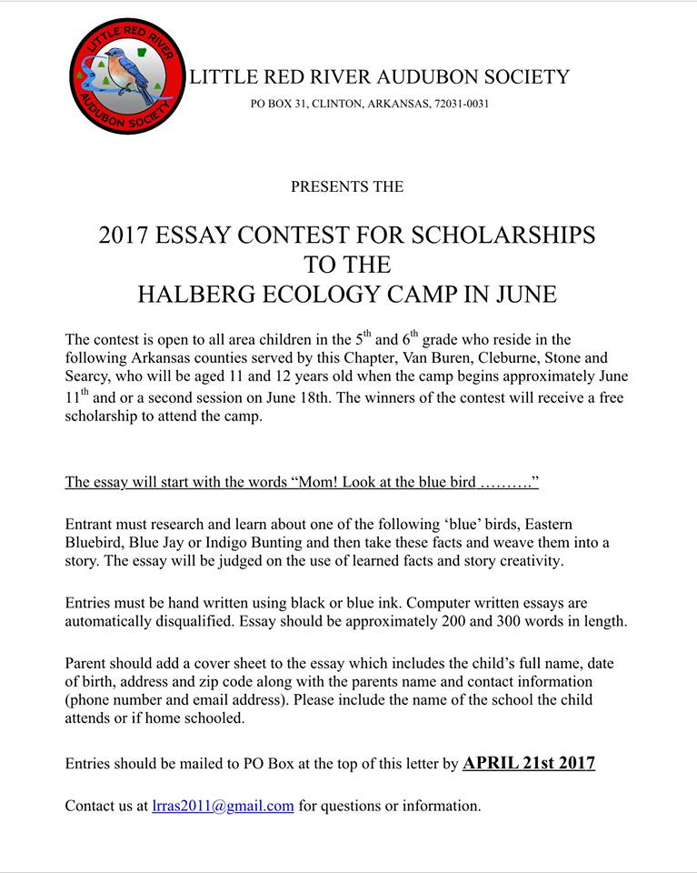 Attention, educators! This essay contest offers a chance at some incredible educational enrichment at the Halberg Science Camp in June, for 11-12 year old students. Please pass the word along or email lrras2011@gmail.com for more details on getting involved. Thank you to the Little Red River Audubon Society for great educational programs like this!