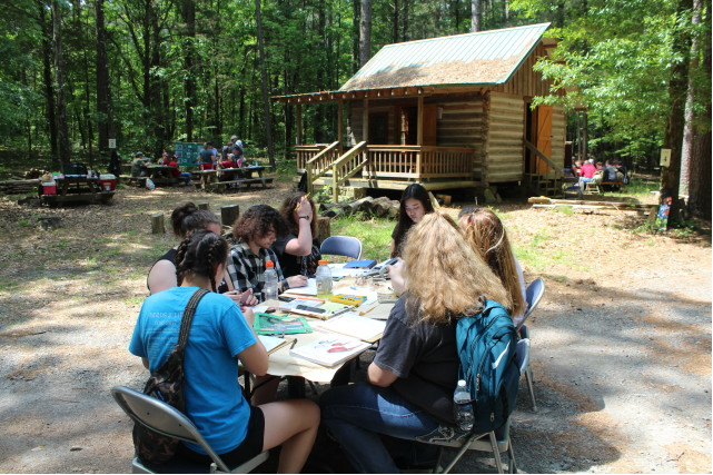 The weather was perfect the morning of May 9th, when the Rosebud High School Pre-Advanced Placement Biology Sophomores with instructor Margaret Moon arrived. Dr. Don Culwell met the school bus and led the group on a nature walk through the woods to the cabin, where he shared the story of folk singer Almeda Riddle, and how this authentic 100-year-old important piece of history was moved and restored.