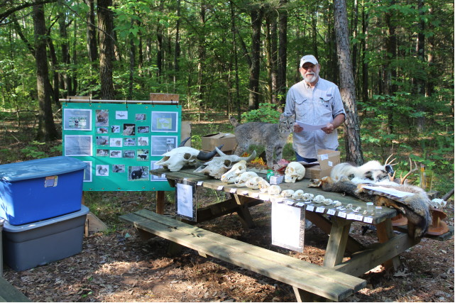 Four docents provided hands-on instruction: taxidermist Bob Verboon brought his amazing collection of skulls, Shirley Pratt led groups along trails to show edible and medicinal plants, Don Culwell taught hands-on flower structure and function, and artist Joyce Hartmann led the group in drawing techniques and constructing a group nature art journal.