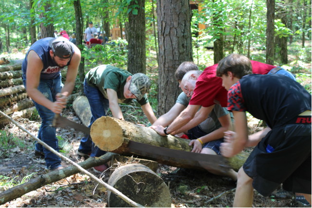 After these sessions and lunch at the picnic tables, students got a good workout when they tried their hand at cutting logs using crosscut saw techniques. After a concluding hike to the waterfall, everyone loaded up on the bus for the return home, taking along memories of a great time with many new things learned.