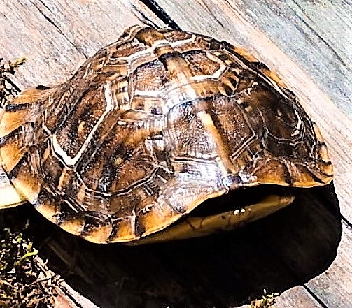 This box turtle was observed sunning itself. It can be classified as an omnivore (it eats both plants and animals). It is an integral part of the native population and food web present as South Fork Nature Center. If you observe one while walking the trails, please leave it in its natural habitat. -