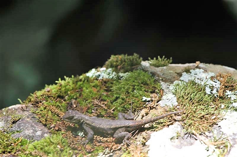 This lizard is only visible because it is located on a green background. The natural camouflage of its scaled skin affords it protection from predators. Visitors can observe examples of nature’s “camouflage” on many of the species present in the natural habitats which make up the Nature Center.