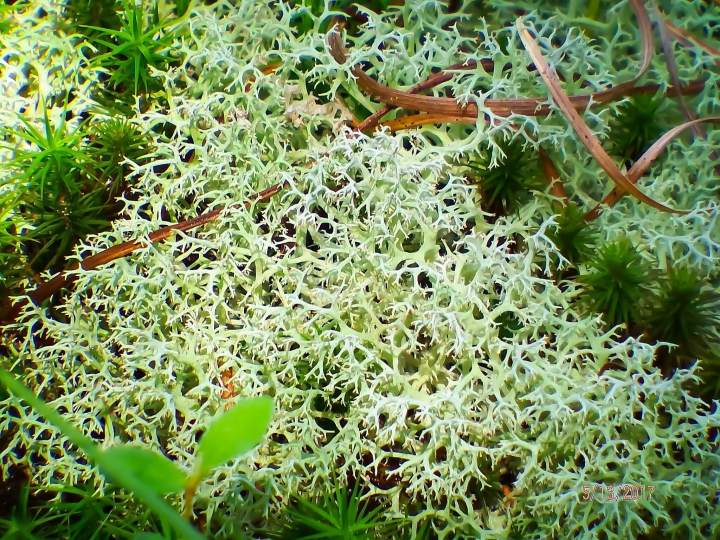 This is a Pioneer Plant that grows on thin, rocky soil. The fungal threads making up the lichen have a symbiotic relationship with the microscopic algal cells living among them. -