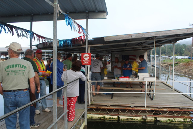 On September 9th, we met at the Choctaw Marina at 7:30 a.m., when the morning mist was still coming off the water. Volunteers lined up to register before the cleanup; each one received a ticket for a free lunch afterwards either at The Narrows or at Choctaw Recreational Park.