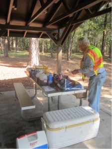 Special thanks to helping hands from the City of Clinton, including Jason Hayes (Chamber of Commerce), Tony Soyani (Advertising & Promotion Commission), and Philip Ellis (Chamber of Commerce & Zoning Department). These gentlemen organized the volunteer cookout held at Choctaw Park to feed our hungry cleanup crew! A turtle wished us luck as we left, and said thanks for helping to keep his home healthy!