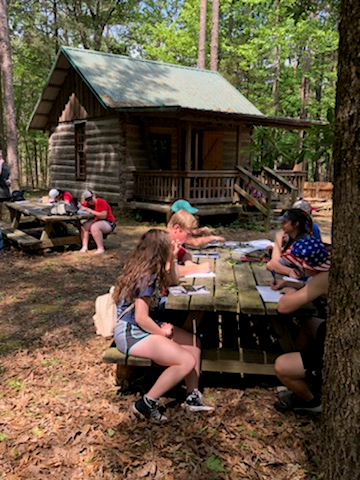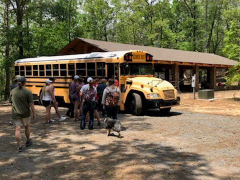 Science study during the school year “hit the road” as students walked trails, sat in study groups in the woods, and did “hands on” activities at the tables. Erin Scrimshire’s Southside Bee Branch 4th graders (34 of them) spent time in the out-of-doors stomping out the “nature deficit syndrome.”