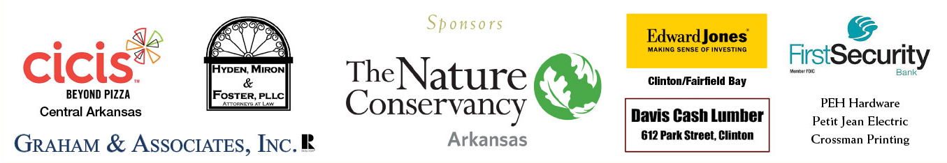 We also want to thank our sponsors, starting with First Security Bank of Clinton (who not only donated money to sponsor our event but sold our tickets locally). Additional sponsors include CiCis Pizza of Central Arkansas, The Nature Conservancy of Arkansas, Graham & Associates, Inc., Davis Cash Lumber, Edward Jones of Clinton and Fairfield Bay, PEH Hardware in Choctaw, Petit Jean Electric, and Crossman Printing. Many thanks goes to all who pitched in to make this a successful night!