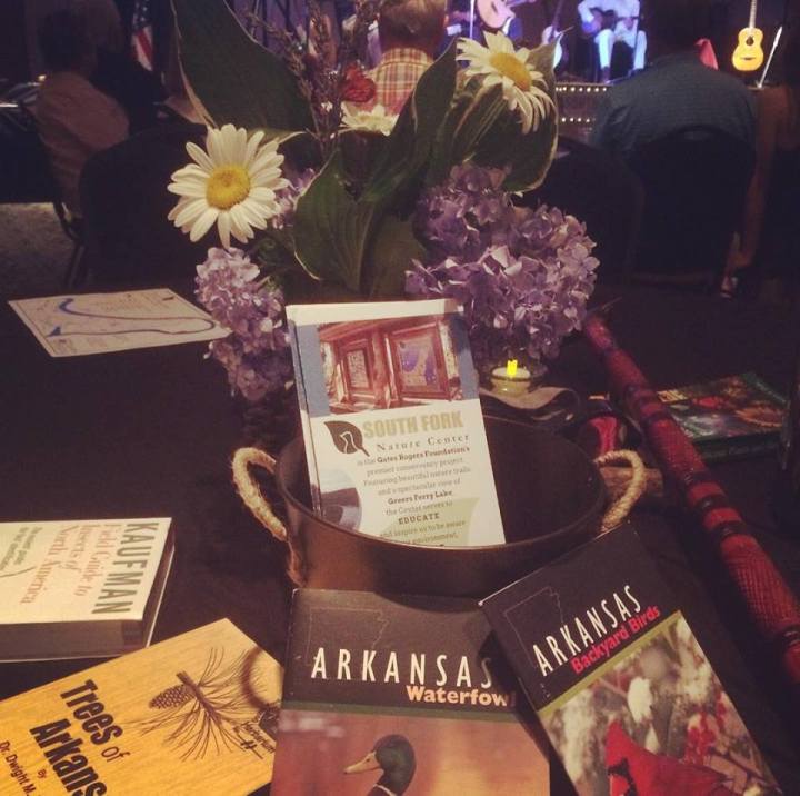Many docents and friends of South Fork stepped up to the plate by donating items to our Silent Auction. The theme of the Auction was “Arkansas Artists-Arkansas Destinations.” There were blown glass goblets, a hand turned wooden bowl, oil paintings, pastels, water color pieces, pottery, jewelry, grilling tools, a unique glass sculpture of a quilt square, a stained glass sun catcher, along with an outfitter trip on the Little Red River, a 2 night stay at a fishing cottage on the Little Red River, and a 2 night stay at the Whispering Wings Ranch (located near the Kings River) donated by The Nature Conservancy.